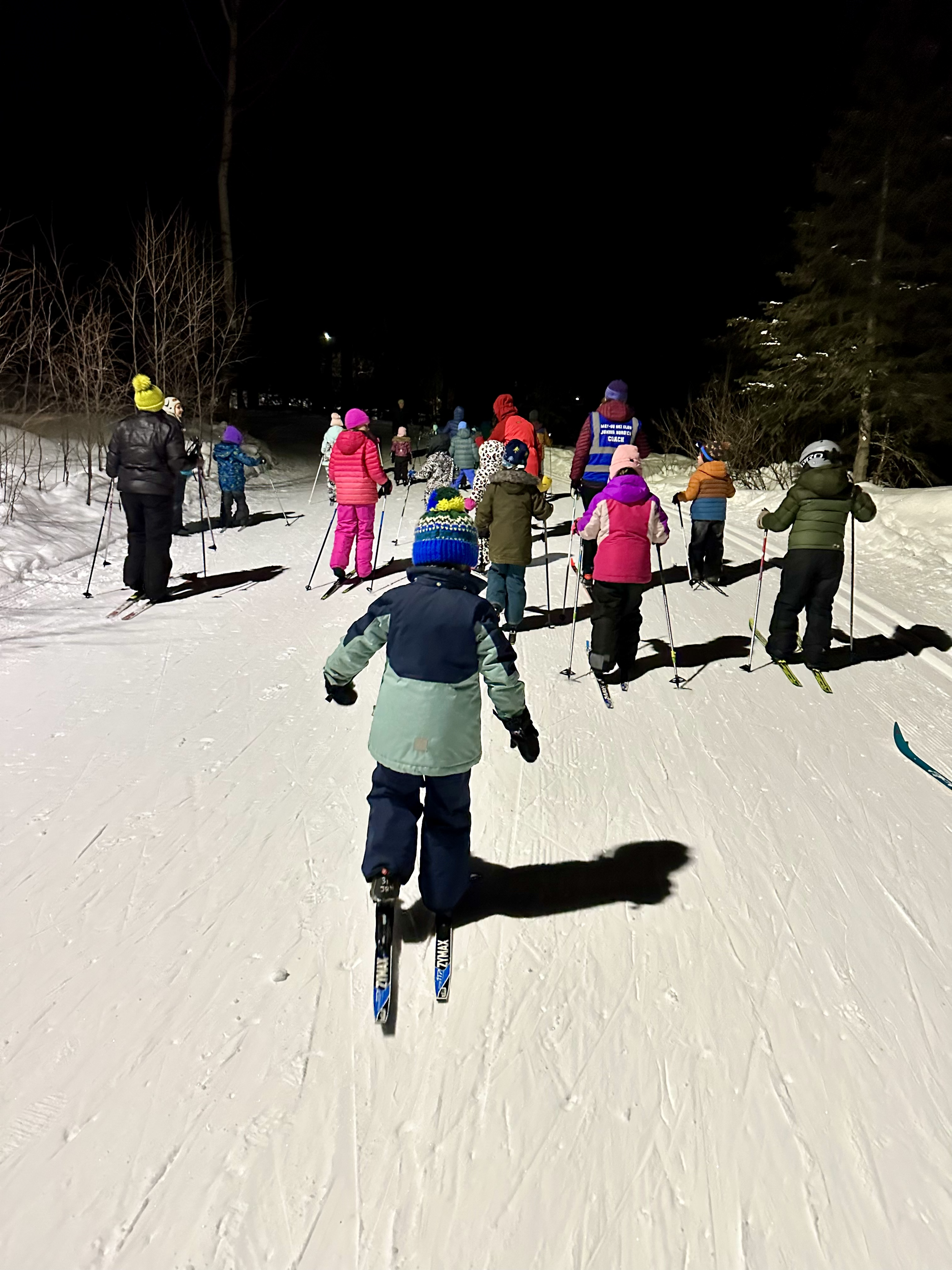 Junior Nordics gives children the chance to enjoy the Alaskan winter while learning cross-country skiing. Skiers of all abilities are welcome to join a program focused on fun, fitness, and technique. Volunteer coaches teach classic and skate skiing, equipment care, trail etiquette, sportsmanship, and outdoor responsibility. Practices include warm-ups, technique lessons, group skiing, and a fun activity.